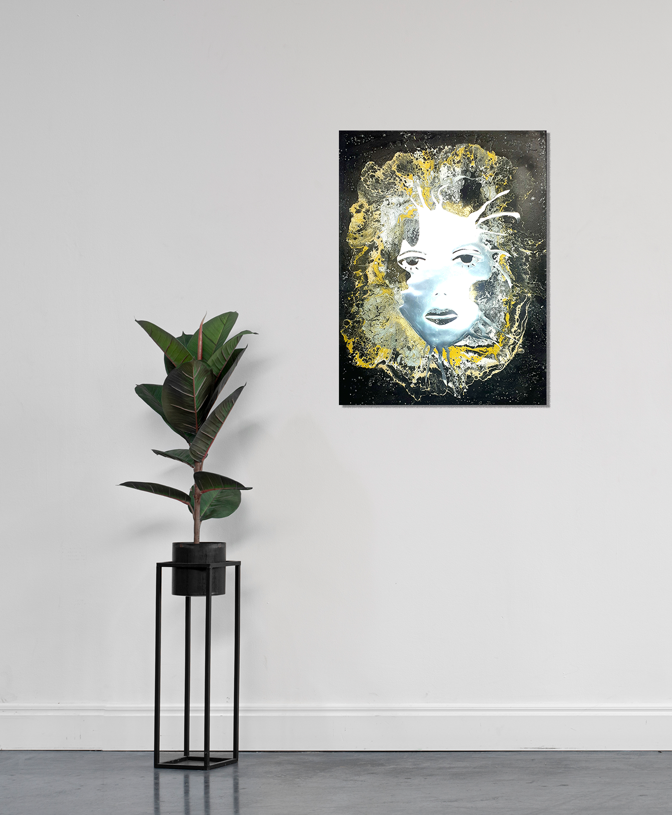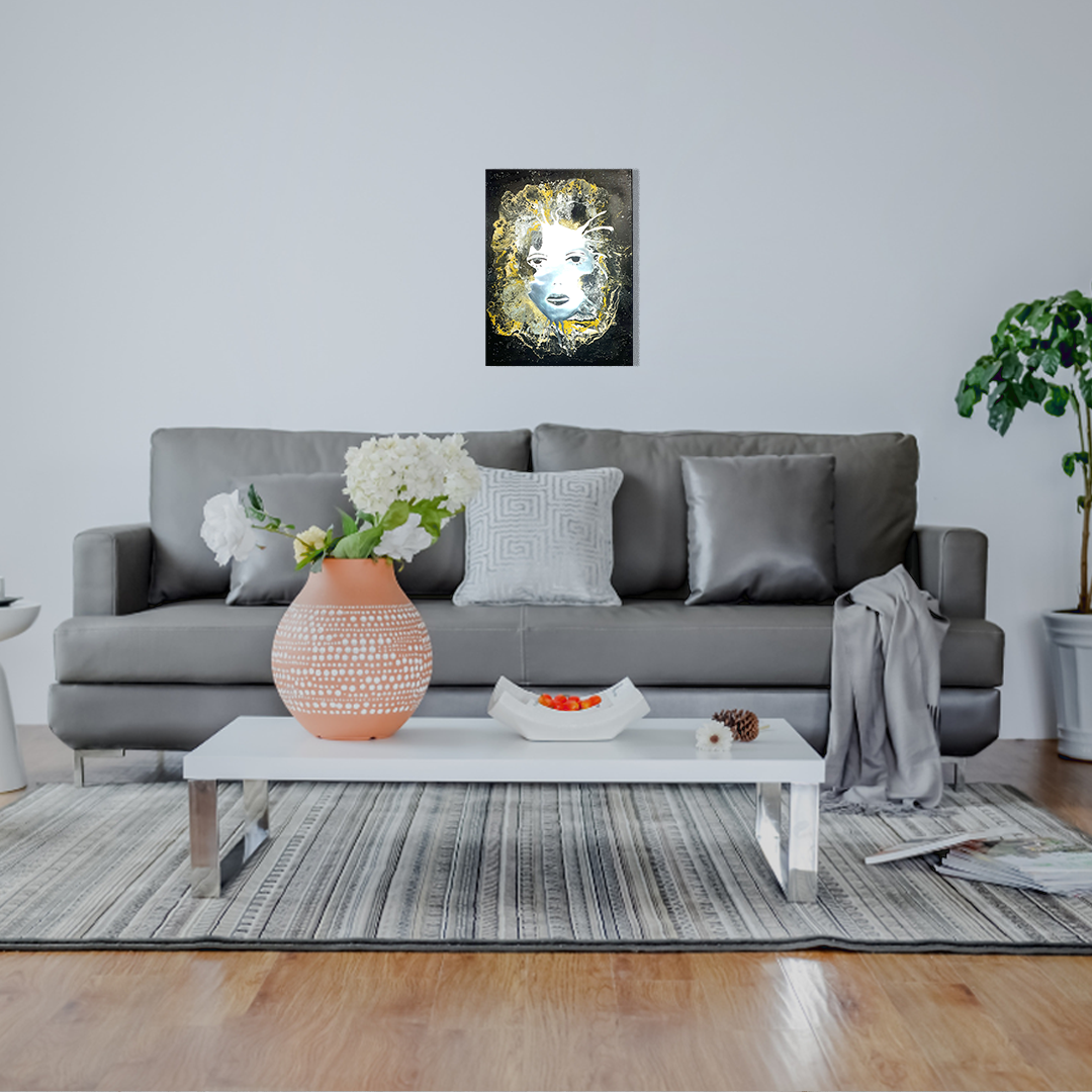 Acrylique sur toile lin 40 cm x 60cm, châssis bois, verni mat et collage miroir.