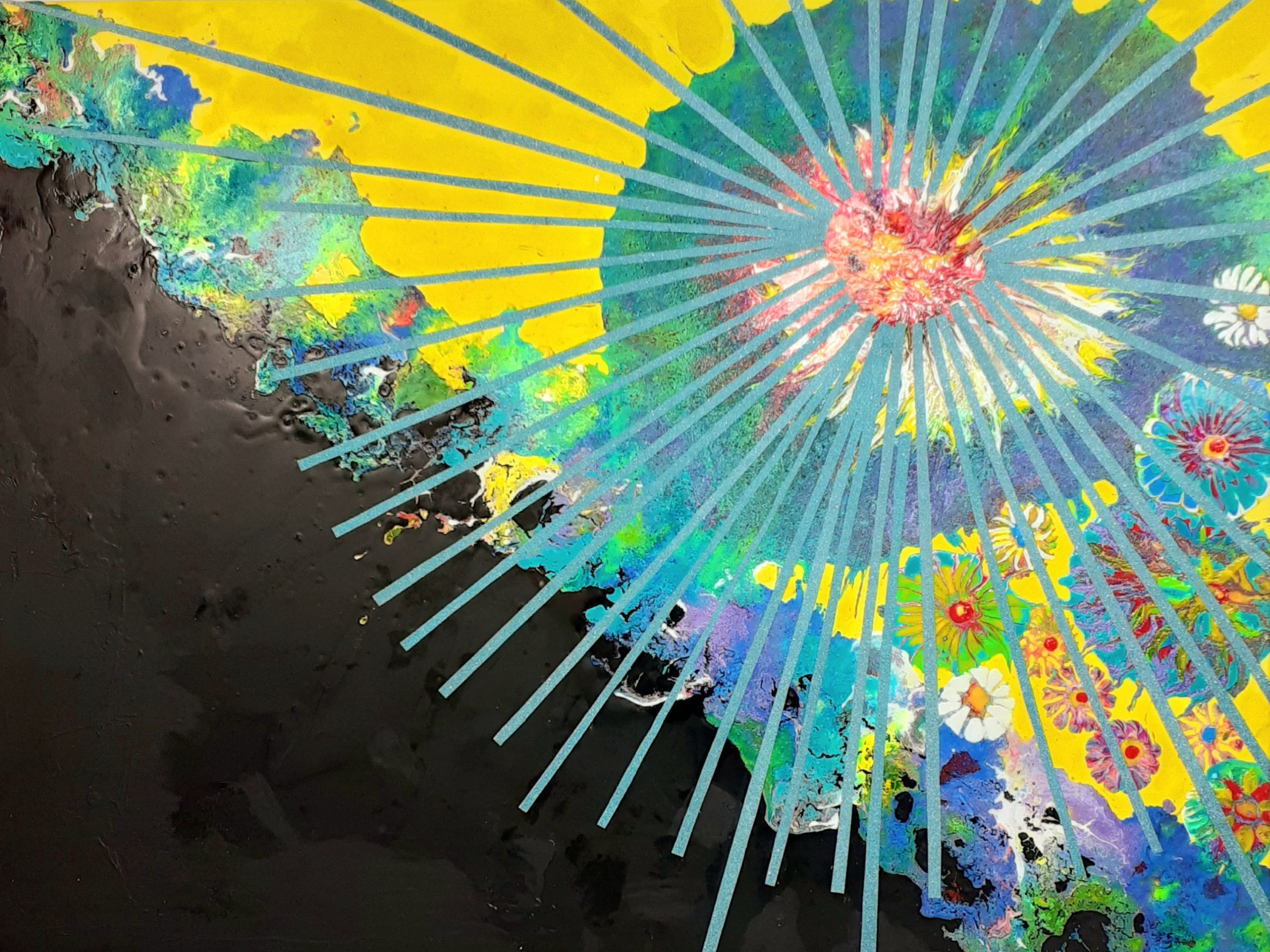Acrylique sur toile lin 60 cm x 80cm, châssis bois, verni mat et collage.
